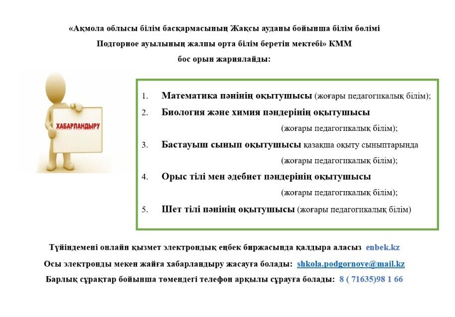"Ақмола облысы білім басқармасының Жақсы ауданы бойынша білім бөлімі Подгорное аулының жалпы орта білім беретін мектебі" коммуналдык мемлекеттік мекемесі