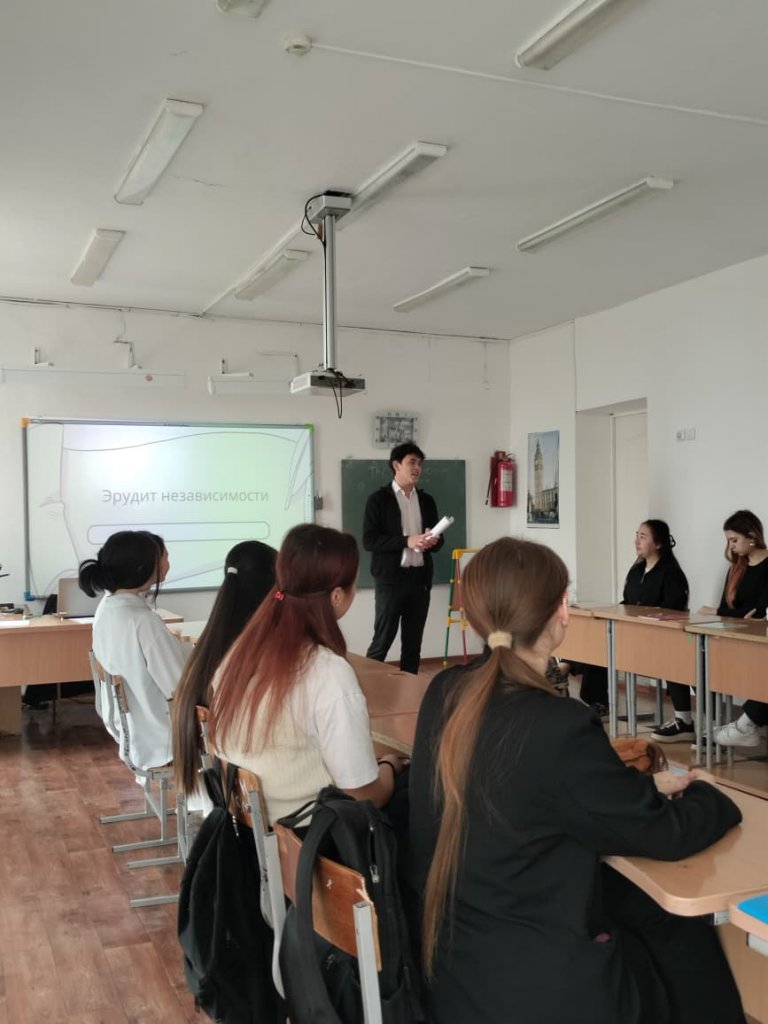 3 желтоқсанда ағылшын тілі мұғалімі Е. К. Жұмабаев оқушылар арасында "Тәуелсіздік эрудиты" атты зияткерлік ойын өткізді. Ойын барысында оқушылар кең ой-өрісін көрсетті, белсенді және командада жұмыс істей білді. Балалар Қазақстанның тарихы мен мәдениеті бойынша сұрақтарға жауап берді, лексикалық тапсырмаларды орындады, сондай-ақ ойлау жылдамдығы мен эрудицияға арналған конкурстарға қатысты